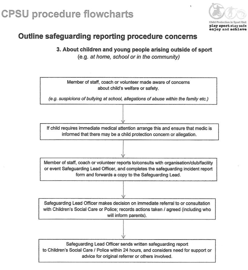 • The relevant Welfare Officer would then follow the procedures in their club’s safeguarding policy.