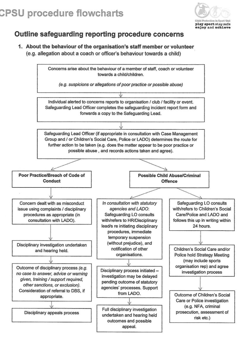 • The relevant Welfare Officer would then follow the procedures in their club’s safeguarding policy.